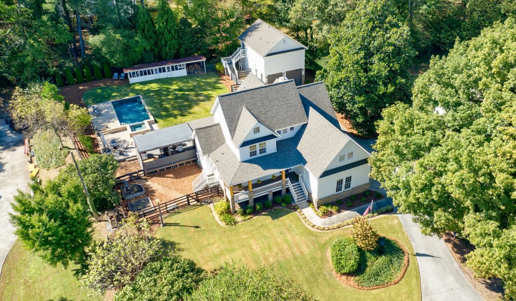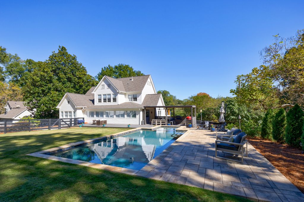 Discover this beautifully updated 4-bedroom, 2.5-bathroom home, complete with an additional charming 1-bedroom, 1-bath Carriage House. With a total of 4 garage spaces, this property is perfect for car enthusiasts, offering the potential to store up to 7 cars with lift accommodations in three garage bays. Relax on the inviting front porch, or take a dip in your heated Pebble Tec saline pool, all while enjoying the freedom of no HOA. Recent enhancements include a new roof, HVAC systems, water heater, and a stunning outdoor covered deck with grills. The kitchen has been tastefully renovated with Calcutta Storm Gold counters and a soapstone island, while the primary bath boasts a modern shower and upgraded closet. Located just 3 minutes from Sope Creek Elementary and 5 minutes from East Cobb Middle, Wheeler High School, and local shopping, this home offers both convenience and tranquility. The versatile Carriage House can serve as an Au Pair suite, guest quarters, or a fantastic home office. With such impressive attention to detail and an unbeatable location, this property is a must-see!